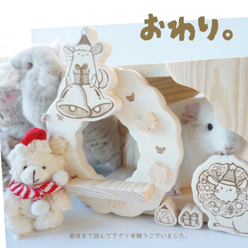 リース部分も“木そのもの”で仕上げており、接合部には小動物に安全な糊のみを使用。